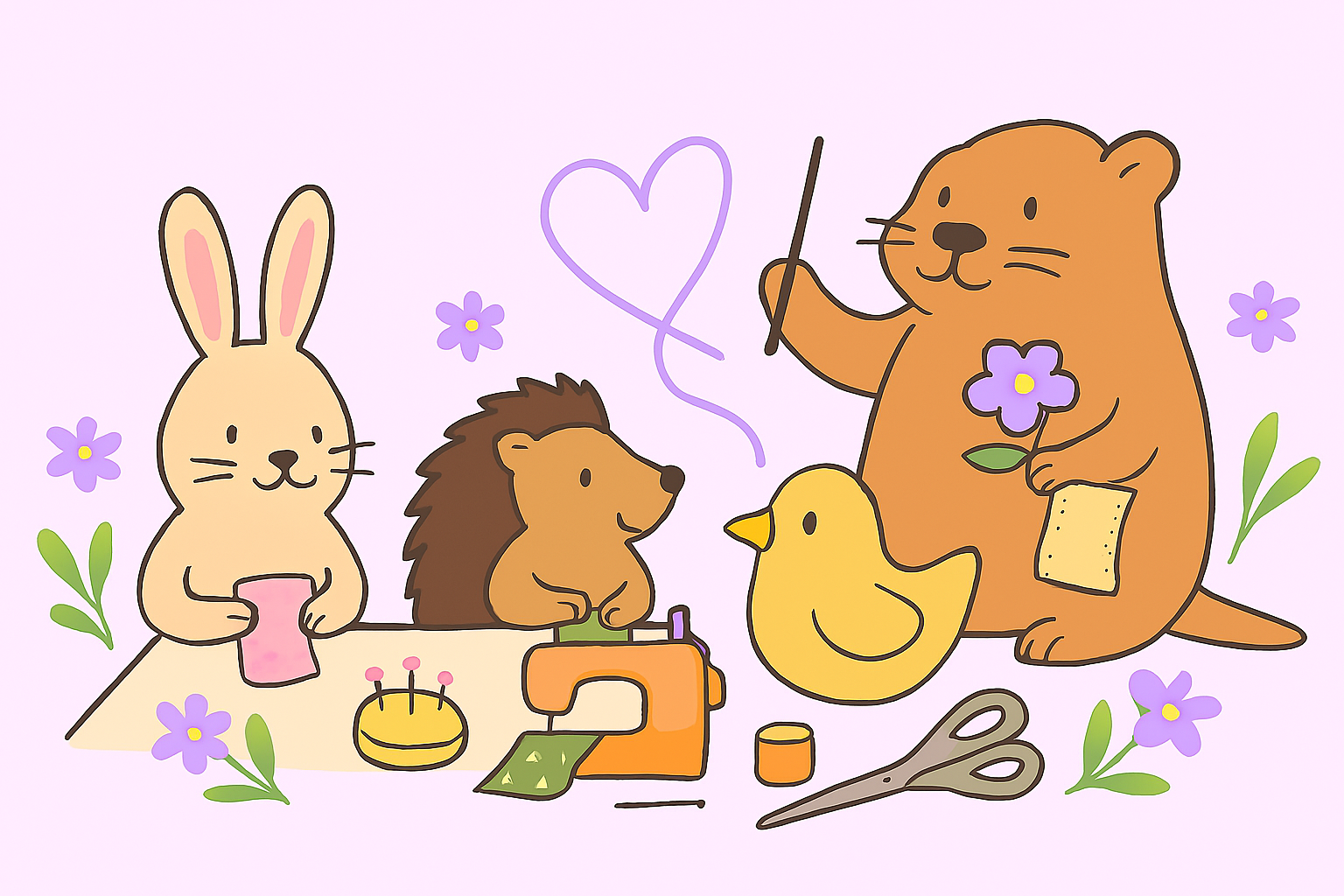 Denk aan linten, biaisband, ritsen, garen, knopen of andere naaibenodigdheden.